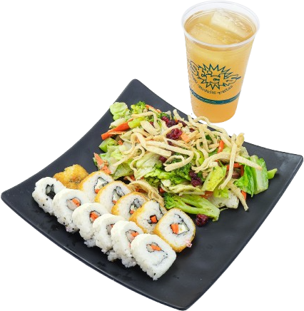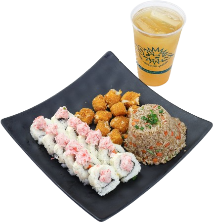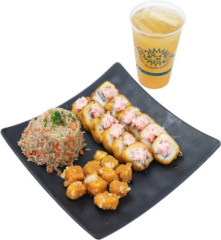 Sushi con Filadelfia, camarón, surimi empanizado y coronado con Tampico