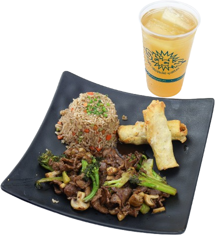 Platillo con Res, champiñones y brócoli con salsa agridulce