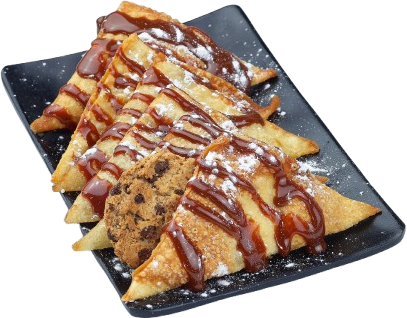 Deliciosa masa de wonton rellena de ingrediente a elegir y chocolate o cajeta.