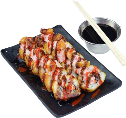 Favorito! Delicioso sushi empanizado con filadelfia y coronado con pollo agridulce