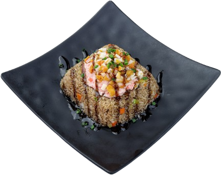 Favorito! Arroz frito con Filadelfia, Tampico, Camarón, Cangrejo empanizados, bañado en salsa de anguila.